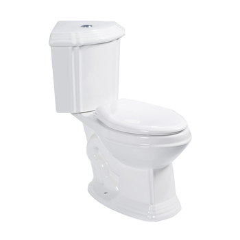 Banheiro retrô de duas peças, P-trap 180 mm de porcelana de acoplamento fechado, banheiro redondo europeu com saída traseira dupla